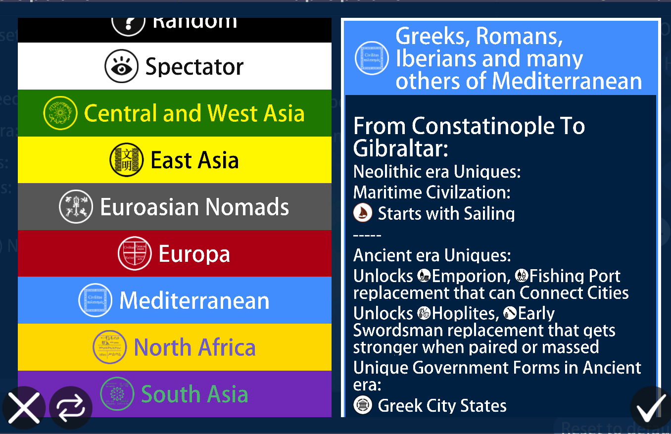 fig.2. Civs(generalised to have unique in all eras. WIP)
